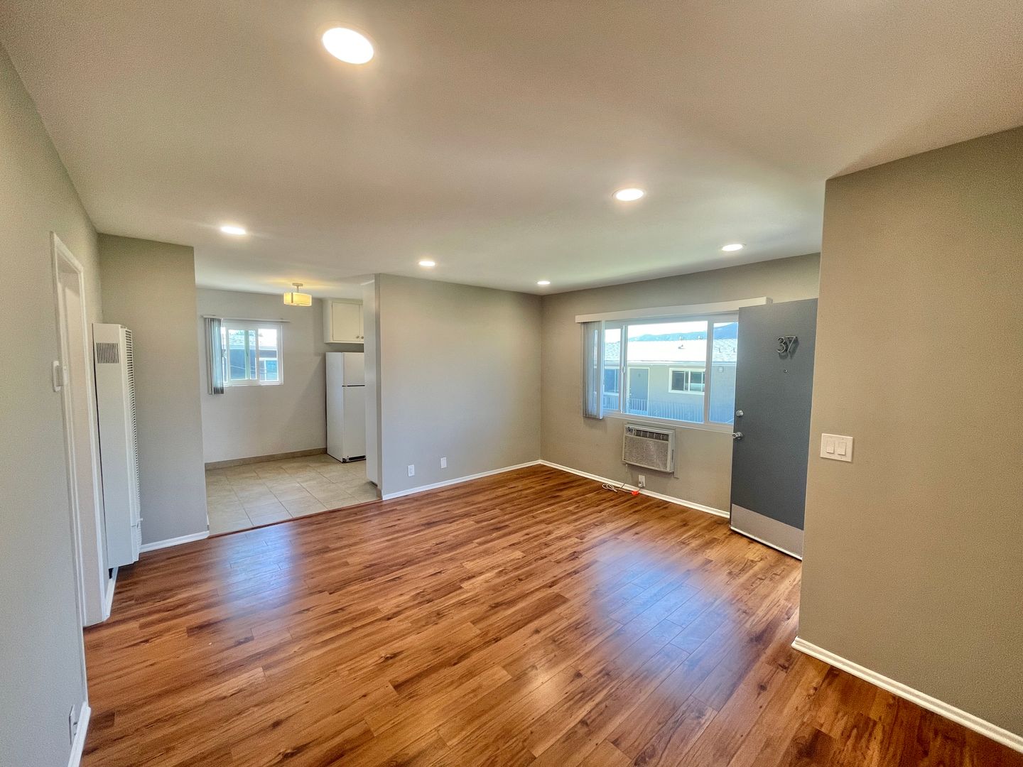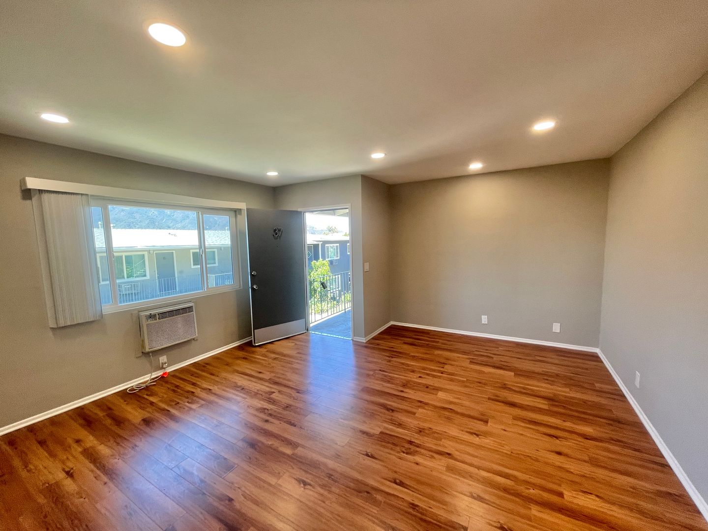 Laminate flooring and fresh paint throughout. Granite counters and ceramic tile floors in kitchen. Bathroom includes full tub shower and ceramic tile floors. Plenty of cabinet space. Air conditioning and heat in unit. Laundry on site. Parking included. La Crescenta School district.